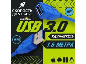 Кабель удлинитель USB 3.0 для подключения периферийных устройств AM / AF (папа - мама) 1.5 метра, синий 102061126699