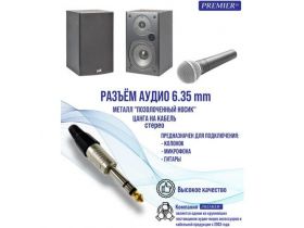 Разъем аудио 6.35мм штекер стерео металл цанга "позолоченный носик" на кабель, черный 103648331356