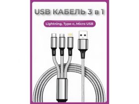 USB кабель для зарядки 3 в 1 Lightning Type-C Micro USB серебро 101985270041