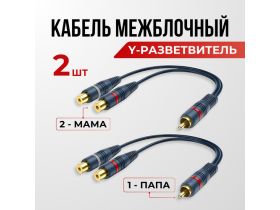 Кабель межблочный акустический 0,2м, RCA Y-коннектор, раздвоитель разветвитель RCA 1 папа - 2 мама 102305422341