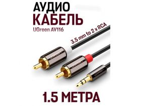 Кабель UGreen AV116 3.5 mm to 2 x RCA Audio Cable (1.5 метра) 10584, чёрный 103300562491