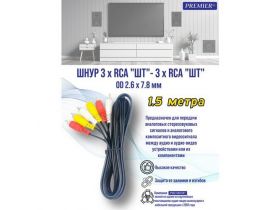 Шнур 3 x RCA "штекер" - 3 x RCA "штекер" OD2.6x7.8мм 1.5 метра черный 103536179985