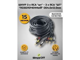 Шнур 3 x RCA "шт" - 3 x RCA "шт" "позолоченный" OD4.0x12.0мм (15 метров) 103535996243