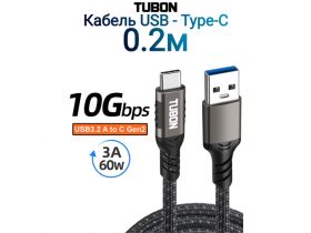 Кабель TUBON Type-A 3.2 - Type-C USBC 3.1 Gen2 10Gb 3A 60w US01 0.2м 103831659717