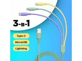 USB кабель Defender F207 3in1 зеленый, 1.2м, силикон, пакет 101816128820