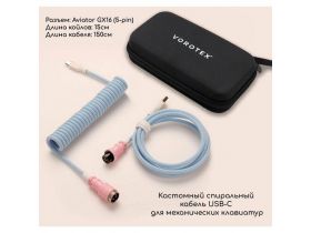 Кабель спиральный с разъёмом GX16 Aviator для игровой клавиатуры, в кейсе, голубой/розовый 101816720097