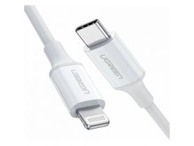 Кабель USB C - Lightning MFI Ugreen, PD 3A, 480 Мбит, резиновое покрытие, 0.5 м, белый (60747) 101922713312