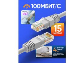 Патч корд, интернет кабель CAT5e, длина 15метров, 100Мбит/сек 103745185353