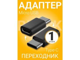 Адаптер переходник Micro USB - Type-C GSMIN Cay (Черный) 103538197061