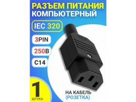 Разъем питания компьютерный IEC 320 C14 (3-Pin 250В, 10А) GSMIN RTS-03, на кабель (розетка) (Черный) 102247180121
