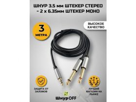 Шнур 3.5 мм штекер стерео - 2 х 6.35мм штекер моно " длина 3.0 метра. 103713311572
