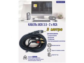 Кабель PREMIER, mini Jack 3,5 мм - RCA, 3 м, чёрный, поливинилхлорид 102080950122