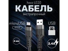 Кабель hoco U110 USB на Lightning, 1,2 метр, 2.4А, зарядка передача данных, тканевая оплетка, черный 103295202564