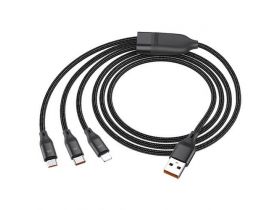 USB дата кабель Lightning+Micro+Type-C, HOCO, U104, Fast Charge, черный 103717033042