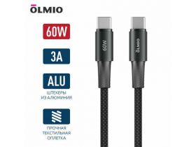 Кабель OLMIO MASTER, Type-C - Type-C, 60W, USB 2.0, 1.2м, черный 103759698829