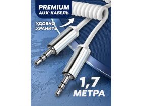 Акустический кабель aux mini jack 3.5 в виде пружины 1м, WALKER, WCA-510, аукс шнур в машину, аудиокабель для наушников, провод для телефона, белый 101807832431