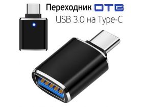 Переходник USB 3.0 на Type-C, Адаптер OTG USB-A 3.0 гнездо на Type-C штекер , ISAG-15 чёрный 101814594143