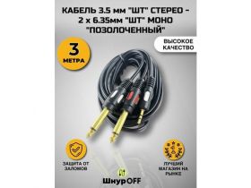 Кабель 3.5 мм "шт" стерео - 2 х 6.35мм "шт" моно "позолоченный" ( длина - 3 метра) 103651552682