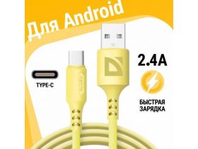 USB кабель Defender F207 TypeC желтый, 1м, 2.4А, силикон, пакет 101815805974