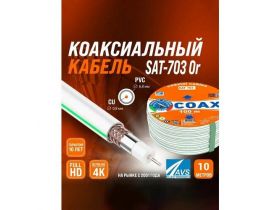 Медный телевизионный коаксиальный кабель 10 м SAT-703 Cu Or AVS Electronics антенный провод для спутниковой тарелки, цифрового, эфирного тв 10 метров 001-222008/10 101805875582