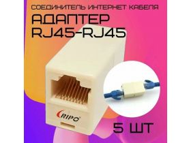 Проходной адаптер для витой пары Ripo Соединитель интернет кабеля RJ45-RJ45 (8P8C) Cat5e (Класс D) 100МГц белый провода 5 шт в упаковке 003-500049/5 101809878444