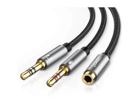 Кабель Ugreen AV140 Dual 3.5 mm Male to 3.5 mm Female Audio Cable (0,2 метра) чёрный (20899) 1826653712