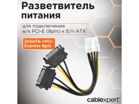 Разветвитель питания Cablexpert, 2xSATA->PCI-Express 8pin 101381780459