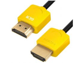 GCR Кабель SLIM 1.0m HDMI 2.0, желтые коннекторы, OD3.8mm, HDR 4:2:0, Ultra HD, 4K 60 fps 60Hz, 3D, AUDIO, 18.0 Гбит/с, 30/30 AWG 101504671670