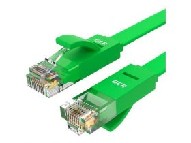 Патч-корд PROF плоский прямой 15.0m, UTP медь кат.6, зеленый, 30 AWG, ethernet high speed 10 Гбит/с, RJ45, T568B (GCR-LNC65) 101381263756
