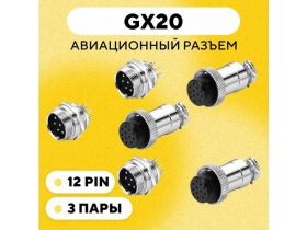 Авиационный разъем GX20 штекер + гнездо с гайкой для монтажа на корпус (папа + мама, 12 pin) 102063426849