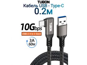 Кабель TUBON Угловой Type-A 3.2 - Type-C USBC 3.1 Gen2 10Gb 3A 60w US04 0.2м 103831915855