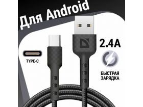 USB кабель Defender F181 TypeC черный, 1м, 2.4А, нейлон, пакет 101815797355