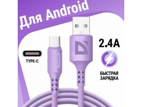 USB кабель Defender F207 TypeC фиолетовый, 1м, 2.4А, силикон, пакет 101815805973