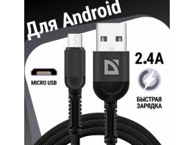 USB кабель Defender F167 Micro черный, 1м, 2.4А, ткань, пакет 101815728158