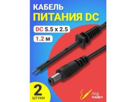 Провод с разъемом DC 5.5 x 2.5 под пайку 1.2 м, 2шт (Черный) 102072446245