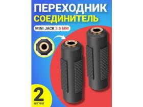 Переходник адаптер соединитель Mini Jack 3.5 мм (F) - Mini Jack 3.5 мм (F) мини джек GSMIN A74, 2шт (Черный) 102085917271