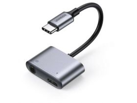 Переходник UGREEN CM231 (60164) Type C (M) to Type C (F) + AUX 3.5mm (F) 2A PD 30W Gray 101742519350