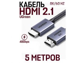 Аудио и видео кабель HDMI 2.1 UGreen 8К/60Hz 48 Gpbs 5 м, серый, черный 4677350381