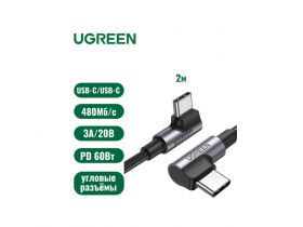 Кабель UGREEN US323Type C угловой (90) to Type C угловой (90) 3A PD 60W в оплетке 2 м, цвет черный (70531) 4406119194