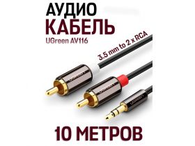 Кабель UGreen AV116 3.5 mm to 2 x RCA Audio Cable (10 метров) 10584, чёрный 103656431173