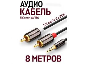 Кабель UGreen AV116 3.5 mm to 2 x RCA Audio Cable (8 метров) 10584, чёрный 103656431172