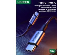 Кабель UGREEN US316 Type C - Type C, 5A , PD 100W. 1 м, Черный 4406125917