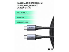 Кабель для быстрой зарядки и передачи данных Ugreen, USB-C на USB-C - PD 240Вт, 480 Mbps, Длина 1м, цвет серый (15311) 4391274284