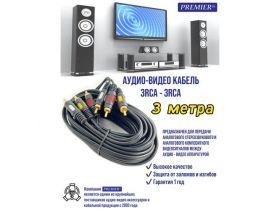 Шнур 3 x RCA штекер - 3 x RCA штекер "позолоченный" OD4.0x12.0мм 3.0метра 103509683862