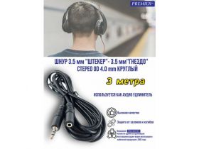Шнур 3.5 мм "штекер" - 3.5 мм "гнездо" стерео OD4.0мм круглый 3.0 метра (удлинитель для наушников) 103510257551