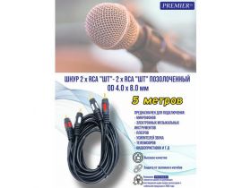 Шнур 2 x RCA "шт" - 2 x RCA "шт" "позолоченный" OD4.0x8.0мм 5.0метра 103516460268