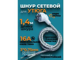 Шнур сетевой для утюга 1,4 метра, в тканевой оплетке, сечение 3*0.75 мм 4495087763