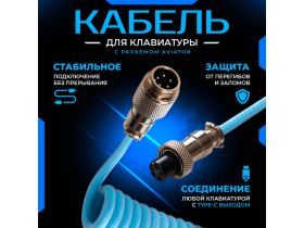 Кабель Booox Aviator GX16 (5-pin), для клавиатуры, витой, с оплеткой, USB 3.0, 1.8м, синий, голубой 103719247930