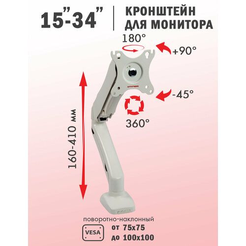 Кронштейн для LCD/LED мониторов 15"-32", max 2-7 кг, настольный, 6 ст свободы, наклон ±90°, поворот 360°, перемещение вверх/вниз в пределах 325 мм
