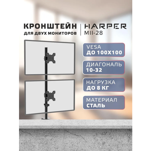 Найти - Кронштейн двойной настольный Vesa до 100х100 / диагональ 10-32, наклонно-поворотный, Harper MII-28